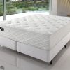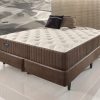Toque superior, tecidos superiores. Produzido no sistema de molejo Verticoil, sistema resistente, com pouca flutuação e muito conforto. Ideal para biótipos de até 120 kg individuais. Pillow top com espumas especiais para confortos especiais com a espuma exclusiva Ecoflex, espuma Ecofresh, mais aerada, mais fresca, mais flexível.